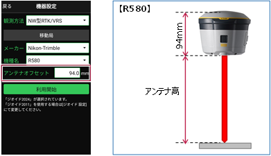 Nikon-Trimble 「R580」のアンテナオフセットについて