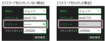 GNSS設定のパスワード欄に表示される「鍵マーク」をタップすると、配信情報サービスのパスワードをロックすることができます。ロックしたパスワードは見ることができません。再度「鍵マーク」をタップするとロックが解除されますが、パスワードも消去されるので注意してください。
