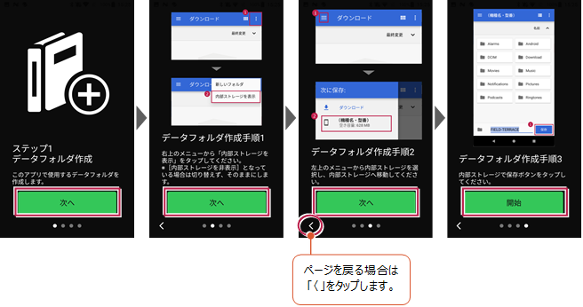 インストール直後に表示される「データフォルダ作成手順」と「データフォルダ選択手順」の画面を、「次へ」ボタンでページ送りできるように改修しました。