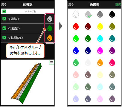 TINデータのグループごとの⾊分けが可能となりました。⼟⼯と排⽔設備といった、モデルのグループごとの⾊分けが可能となり、データの視認性が向上します。
