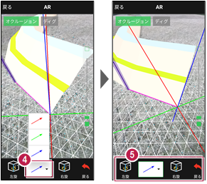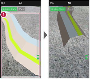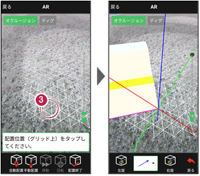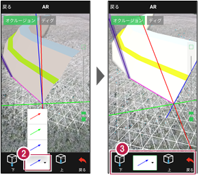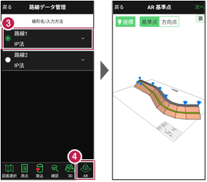 3 AR基準点画面で指定した路線の配置基準点の位置をタップします。