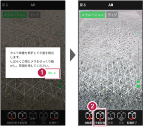 路線データを投影する周辺を、カメラをゆっくり動かして映すと、グリッド(網目)が表示されます。
