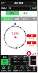 5 杭打ちした座標点を記録する場合は、[記録]をタップして記録します。