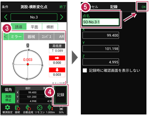 4 杭打ちした座標点を記録する場合は、[記録]をタップします。