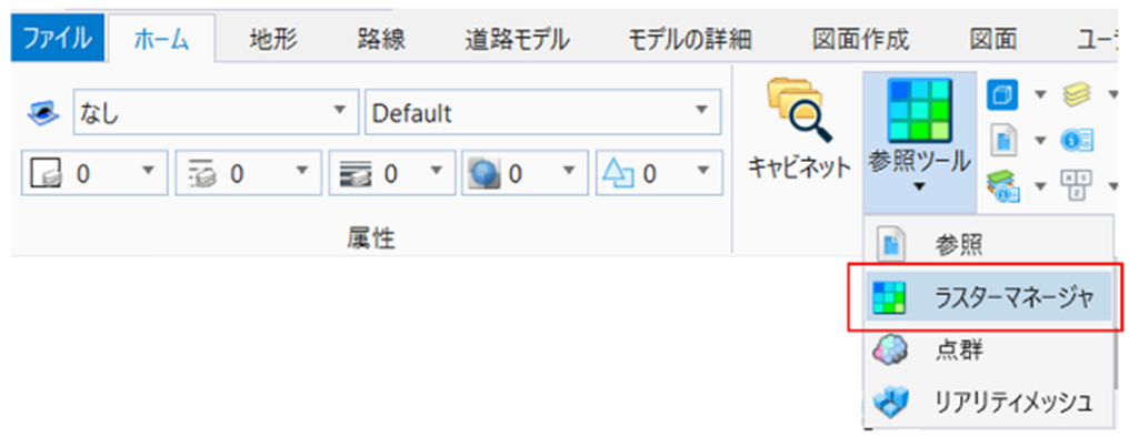 1.[ホーム]タブ-[基本情報]グループ-[参照ツール]-[ラスターマネージャ]を開きます。